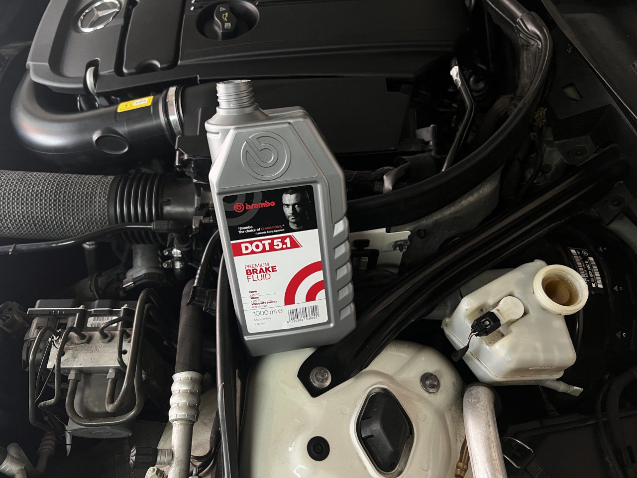 Как правило, требуется небольшой объем тормозной жидкости. Ее количество регламентируется автопроизводителем, который указывает точный объем в руководстве к конкретному автомобилю Mercedes. Обычно, достаточно 0,5-1 литра жидкости.